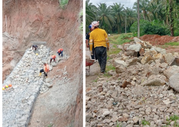 Dengan terlaksananya pengerjaan penahan atau bronjong dengan material batu Padas, yang disusun dan dibalut dengan kawat, diharapkan dapat mengatasi dan tidak terjadinya lagi erosi maupun longsor, dan badan jalan yang berstatus jalan kabupaten tetap terjaga, dan dipergunakan oleh masyarakat maupun warga yang melintas.
