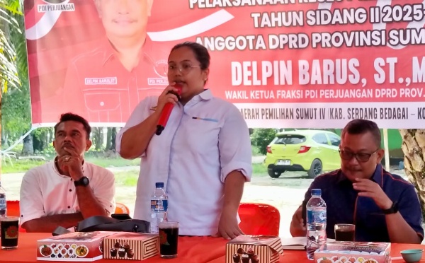 SERGAI, WARTATODAY.com – Wakil Ketua Fraksi PDI Perjuangan DPRD Sumut, Delpin Barus ST.M.I.,Kom, melaksanakan Reses I Masa Persidangan I Tahun Sidang II 2025-2026, di Desa Simalas Kecamatan Sipispis Kabupaten Serdang Bedagai, Selasa (7/10/2025).