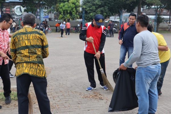 Kegiatan diawali dengan apel bersama di Lapangan Merdeka Kota Tebing Tinggi, yang dipimpin Sekretaris Daerah Kota (Sekdako) Tebing Tinggi, Erwin Suheri Damanik. Apel turut dirangkai dengan laporan penerimaan alat kebersihan oleh penerima kegiatan kepada pimpinan apel.