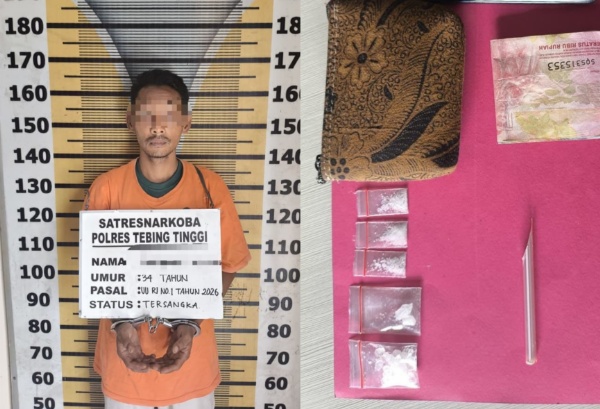 “Pelakunya diketahui berinisial VP alias Gelek (34), warga setempat yang merupakan residivis kasus narkotika. Kepada petugas, yang bersangkutan mengakui bahwa sabu tersebut diperolehnya dari seseorang, yang saat ini masih dalam proses pengembangan”, jelas Kasat Resnarkoba Polres Tebing Tinggi, AKP Jimmy R. Sitorus, SH, Rabu (25/2/2026).