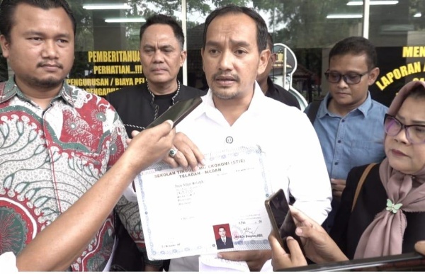 Kepada wartawan di depan SPKT Polda Sumut, Senin (23/2/2026), Iman Irdian Saragih menjelaskan, dirinya melaporkan salah satu akun Facebook dalam dugaan pencemaran nama baik dan penyebaran berita bohong.